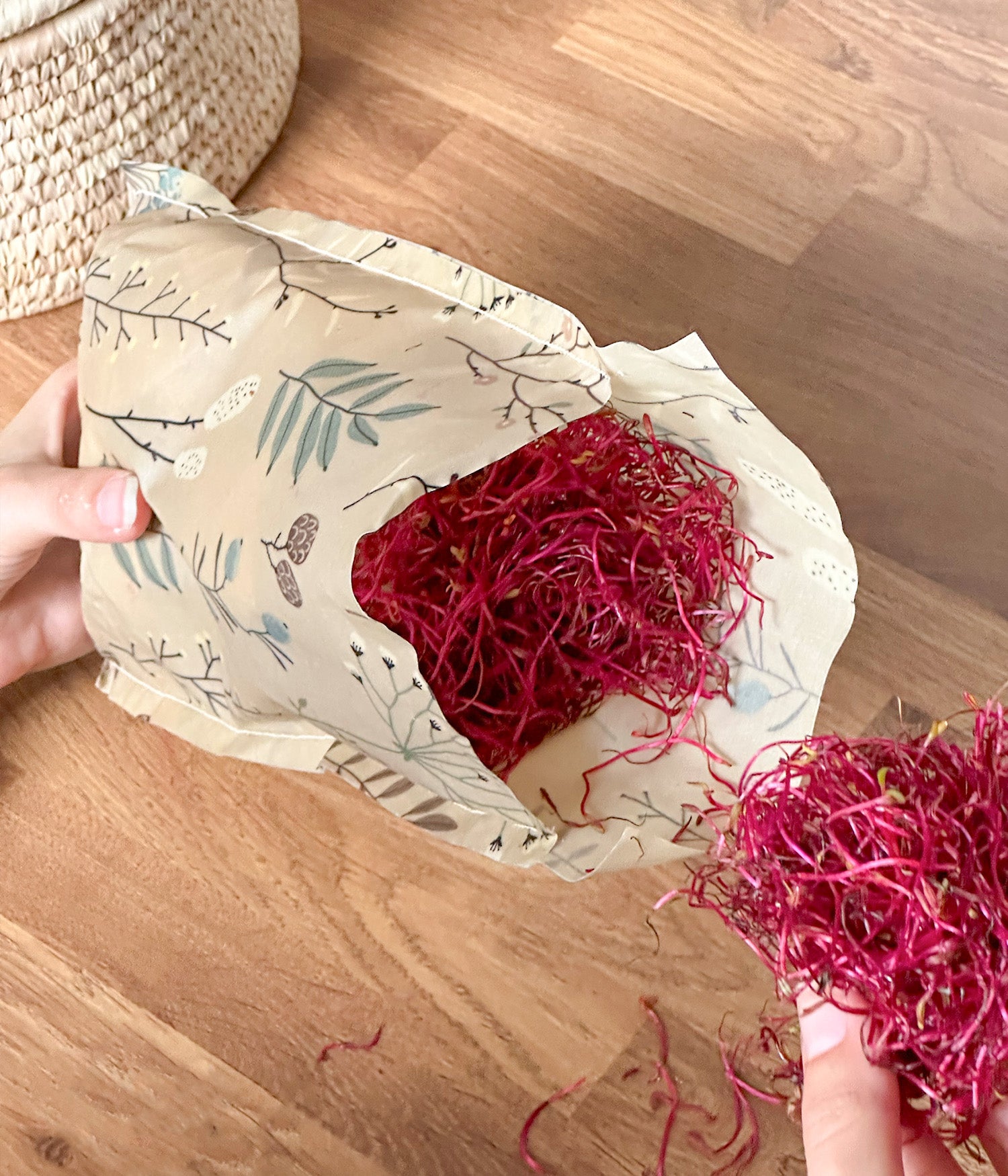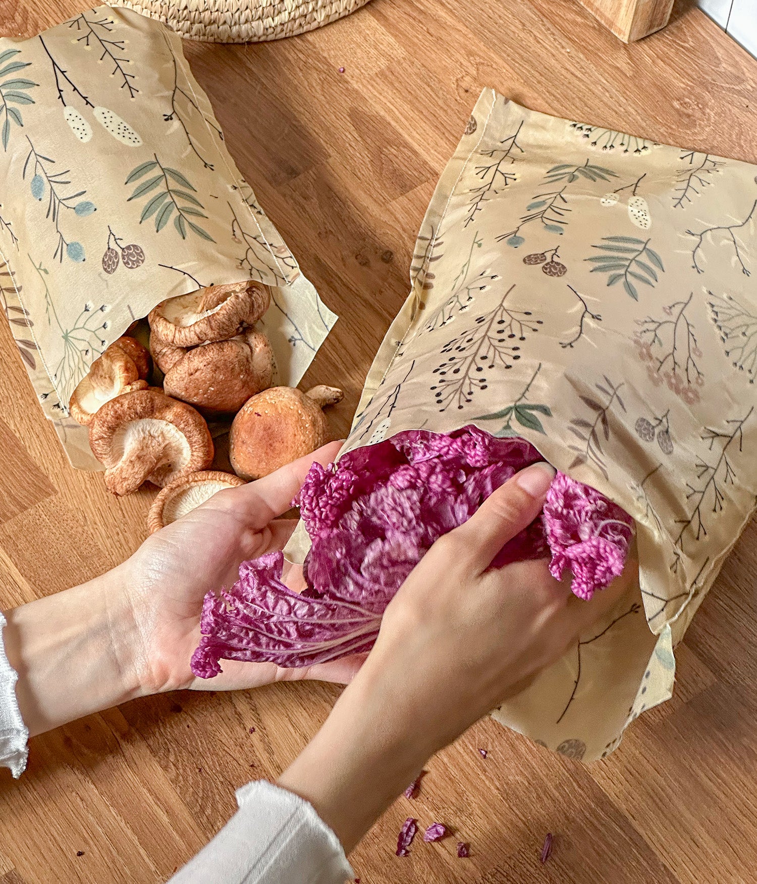 The great thing about beeswax is that it is antibacterial, which extends the shelf life of food. Beeswax bags also breathe perfectly for food storage, which prevents condensation or drying out.